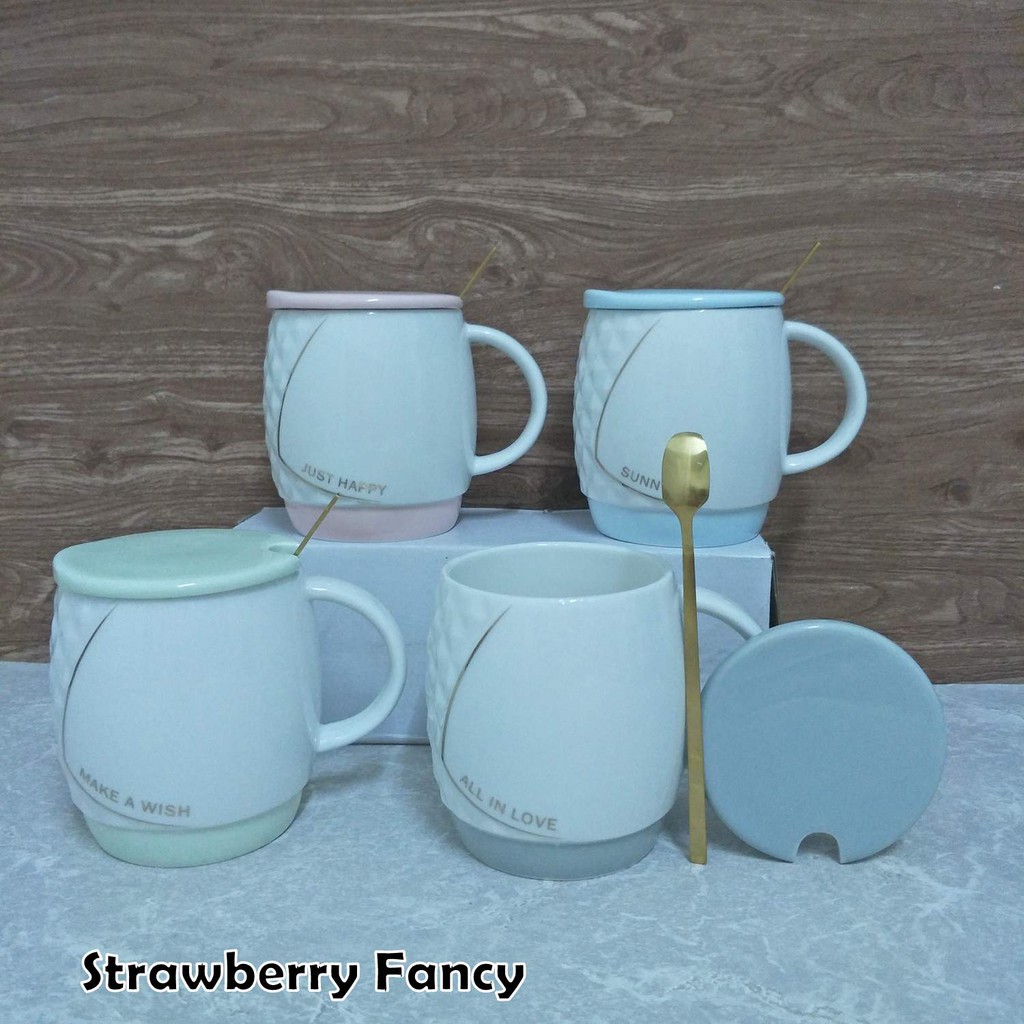 NK308 Mug Keramik Polos Texture Tutup Sendok Stainless Sumber : shopee.co.id